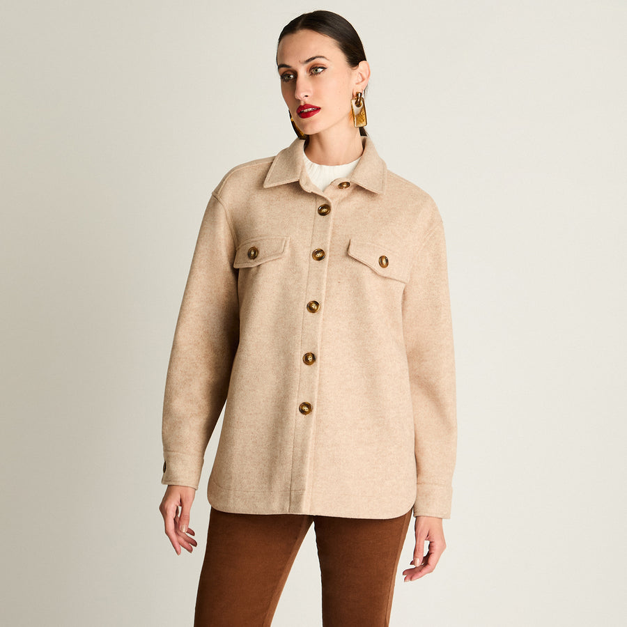 Camisa afranelada beige color cálido ,botones café ,abrigadita para esta temporada .